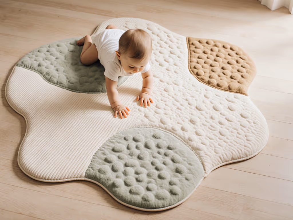 - Sensory texture mapping: Arrange textures in a logical sequence babies naturally crawl across, not scattered randomly.