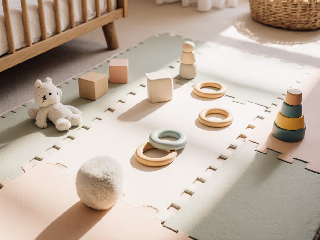- Credible certifications (OEKO-TEX Standard 100, not "non-toxic" claims) Use our non-toxic play mat safety checklist to verify labels and materials.